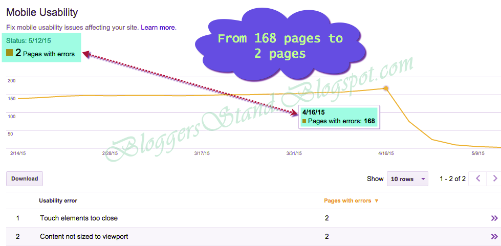 In order to find whether your site is mobile friendly or not, login to Google Webmaster tools account and navigate to “Search Traffic > Mobile Usability” section. You can see the issues are listed along with the graph showing the number of affected pages as below: